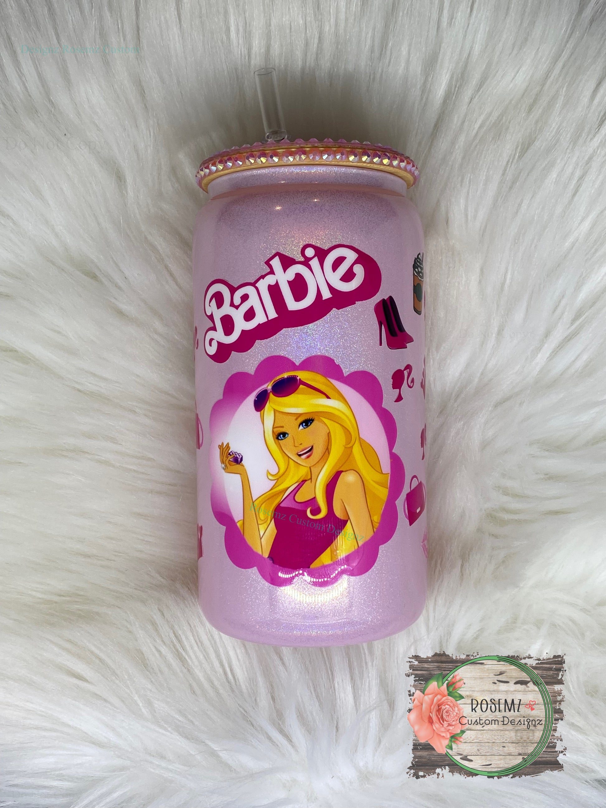 Quench your thirst in glamorous style with this enchanting Barbie glass cup featuring your favorite Doll!