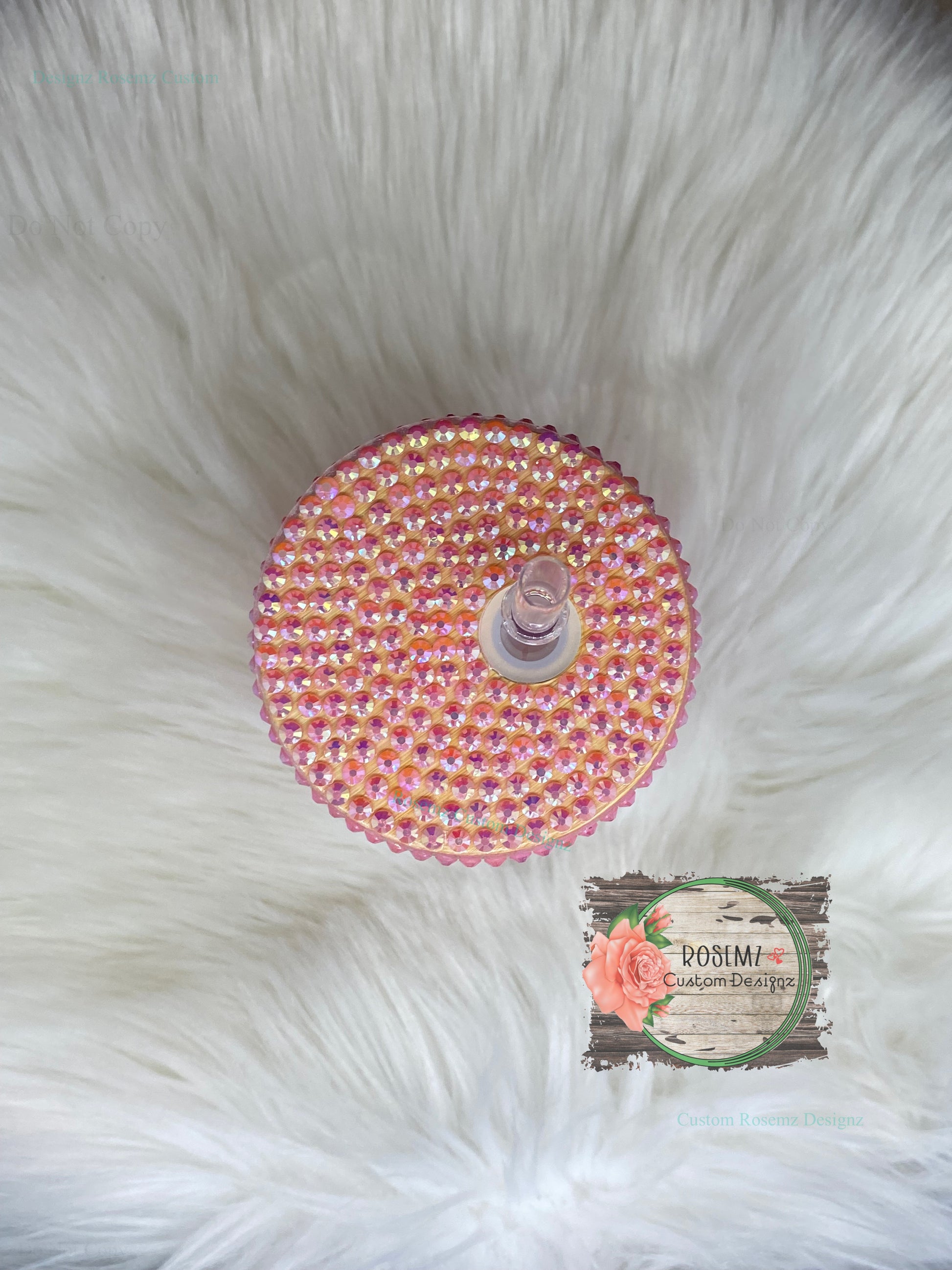 Barbie coffee pink shimmer glass cup with rhinestone lid. RTS