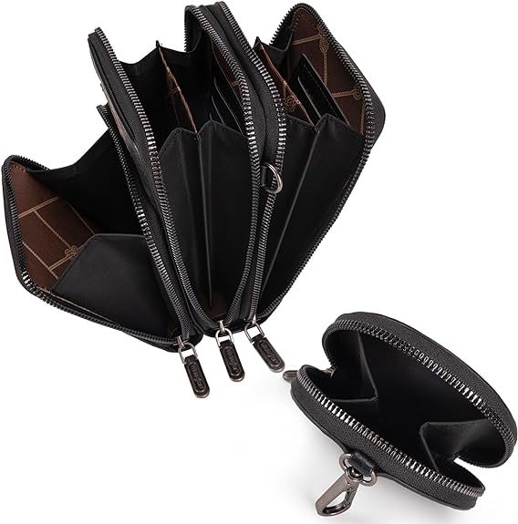 - 2 main pockets and each with 2 inner compartments and total 8 card slots and 1 ID window