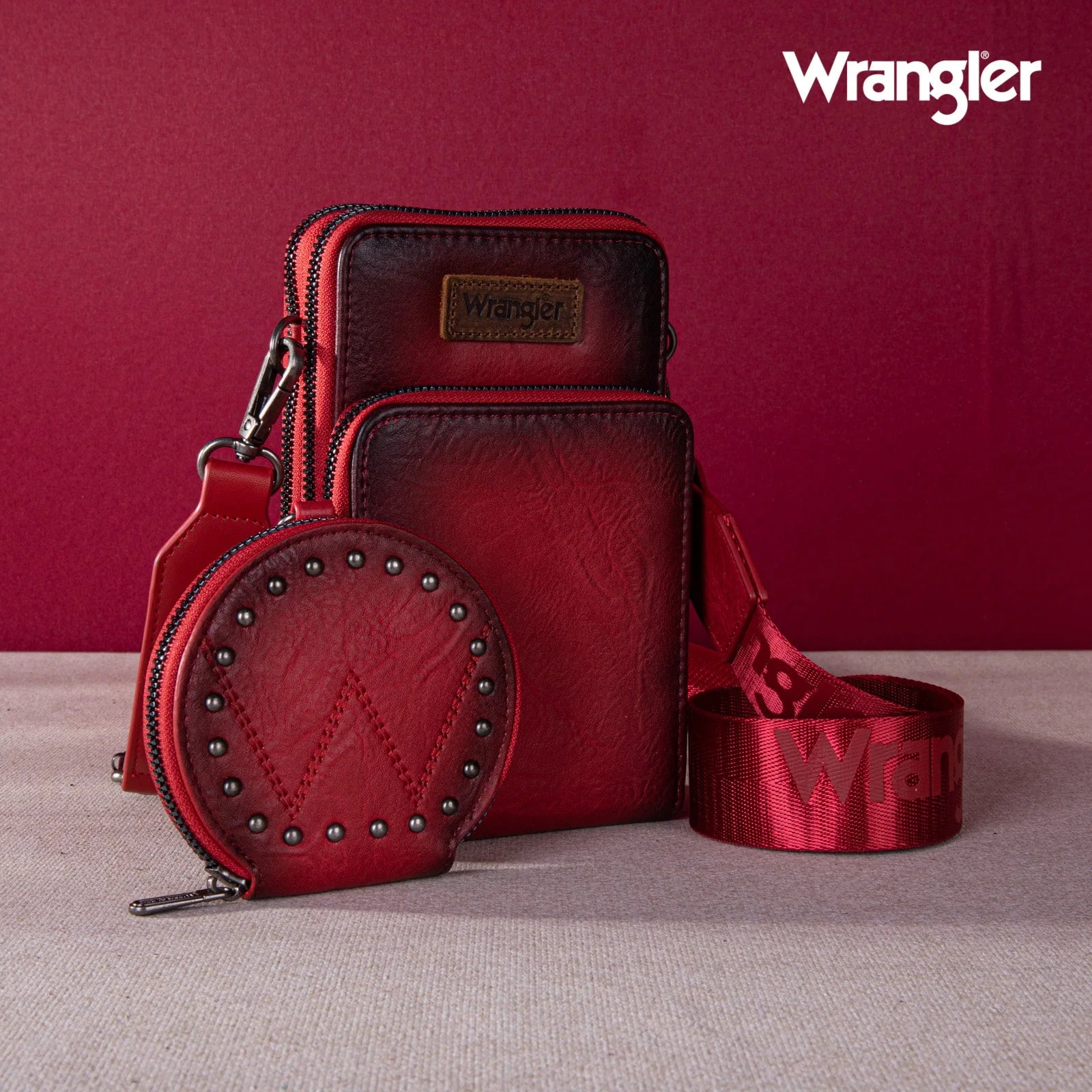 WRANGLER CROSSBODY CELL PHONE PURSE 3 ZIPPERED COMPARTMENT WITH COIN PURSE