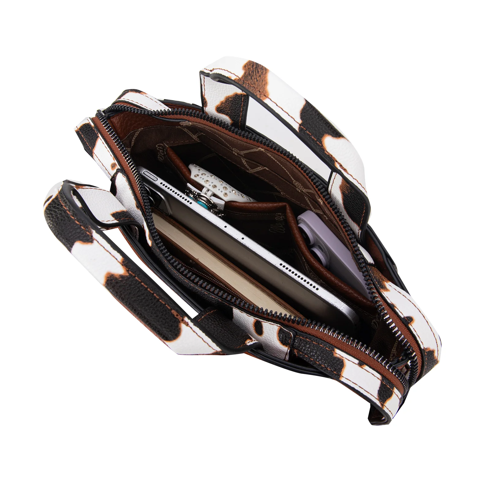 Cow print trimmed